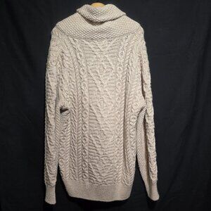 Original Aran Co. 100% New Merino Wool Men's 1 Button Shawl Collar Fisherman Sweater - Oatmeal - Sz M*
