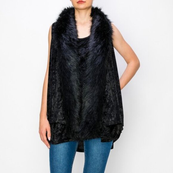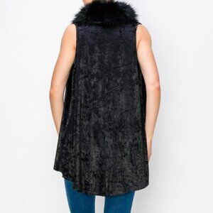 Origami Black Velvet Vest With Removable Faux Fur Collar