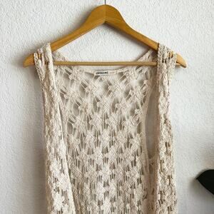 Origami By Vivian Crochet Duster Vest OS Fringe Open Boho Hippie Festival 90s