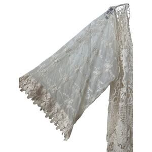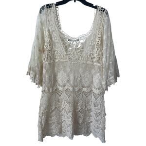 Origami Cream Crochet Laced Loose Knit Tunic Top Women’s Large Boho Lagenlook
