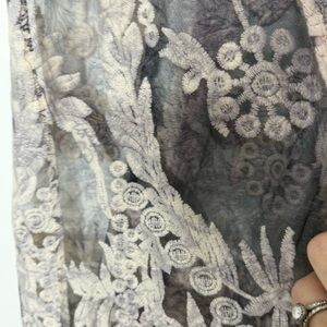 Embrace elegance with this sleeveless floral dress featuring a stylish fringe hem. Perfect for any occasion, this gray dress offers a chic and comfortable fit.