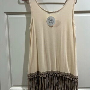 Origami Fringe Boho Cream Tank Top Size Small NWT