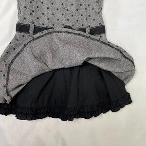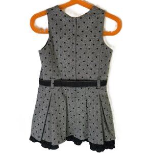 Origami Girl's Size 3 Pleated Jumper Wool Blend Gray Black Polka Dot Ribbon Belt