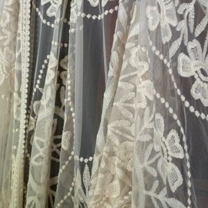 Beautiful lace duster one size fits most, fits small to XL very well. This has been worn 4 times is in excellent condition no holes or snags. This pairs well with distressed jeans, floral bohemian skirts and other styles. Dress up or dress eclectic it fits so well.