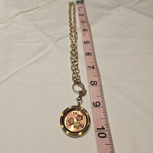Origami Owl Gold Locket chain necklace with three Maple Leaf floating charms