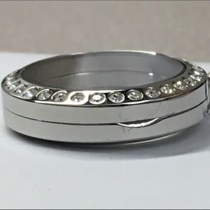 Origami Owl medium locket with crystals in silver. Worn once or twice, this still looks like new! There is a small scratch on the side which is honestly more noticeable in the pictures than real life! (See pics) Holds 4-6 charms.