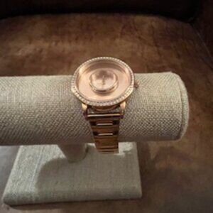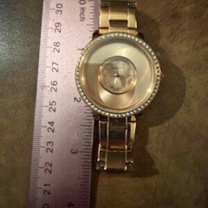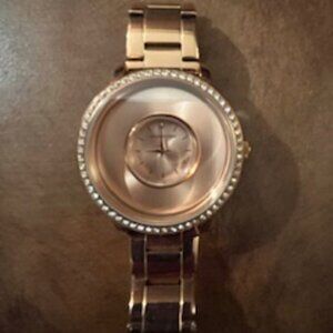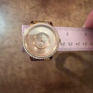 This is an Origami Owl watch in like new condition (I used to be an O2 seller). It's a lovely ROSE GOLD color with white rhinestones for bling! It has a link band with a fold over clasp closure. Needs a battery.