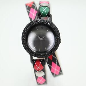 Origami Owl Womens Watch 26mm Black Dial Argyle Double Wrap Strap w New Battery