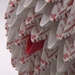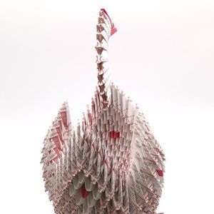 This handcrafted origami swan basket is a stunning piece of art that will add a whimsical touch to any room in your home. Handcrafted from high-quality paper, this basket features a delicate white swan design with charming red accents, giving it a modern yet primitive or folk art feel.