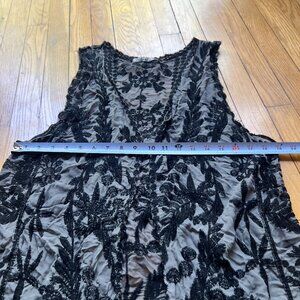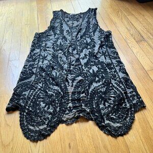 Origami by Viven Gray Black Lace Sleeveless Open Front Duster Cardigan Vest