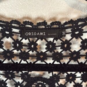 Origami by Vivien Black Floral Crochet Long Line Kimono Cardigan Size Medium