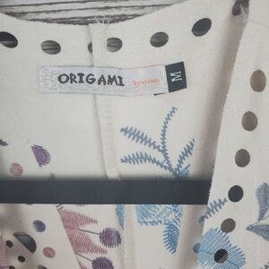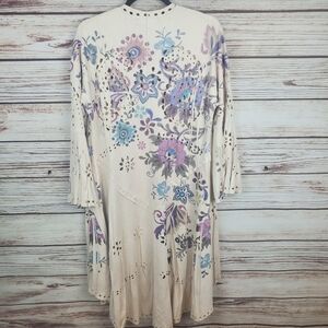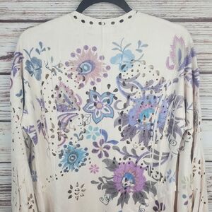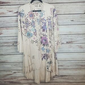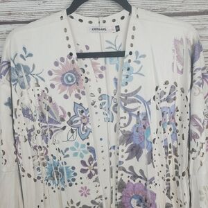 Origami by Vivien Womens Medium Cream Floral Faux Suede Laser Cut Duster Jacket