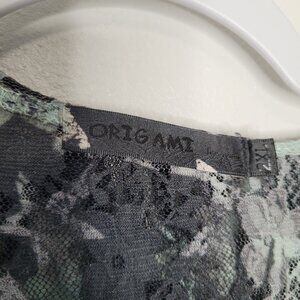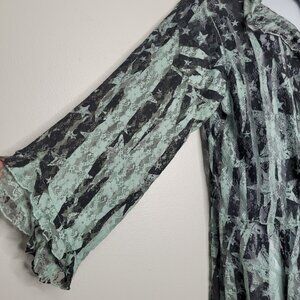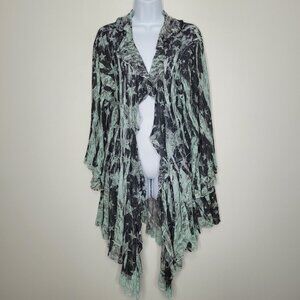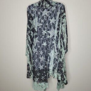 Origami mint gray grunge star print lace ruffle plus size cardigan size 2xl