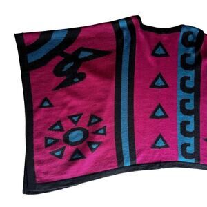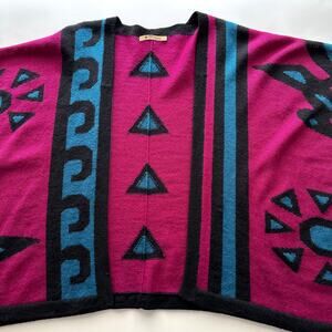 Origin Alpaca Bright South American Graphic Pink Teal Knit Ruana Poncho Wrap OS