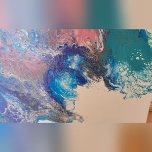 very unique "ocean" came out: using mate acrylics, metallic acrylis. Original by K. Senkute in Rochester Ny 2024