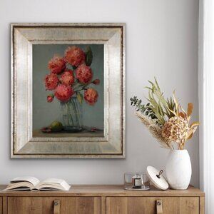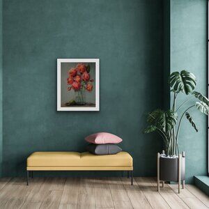 Artwork is displayed in photos with a variety of frames in various rooms as examples. Painting is not sold with frame.