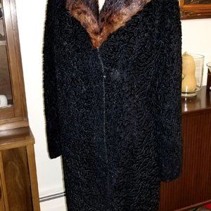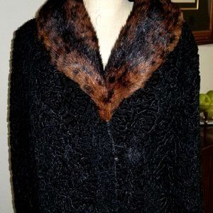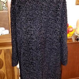 original 1940's coat. YES it has long sleeves (not 3/4 sleeves here). Beautiful collar detail with authentic spotted fur. Bust 44", waist 46", sleeve is raglan so from neck seam 28", length from center back neck seam 42". The coat design has only one button near collar so its an open coat basically with a small hook(photo) midway so the size is flexible. Very good on the outside, there are two areas with tears on the liner inside.