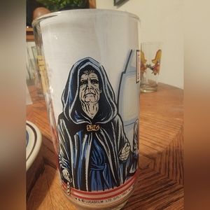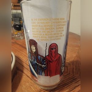 This is an original vintage Burger King Star Wars drinking glass from 1983 featuring Luke Skywalker from Return of the Jedi. It's a great addition to any Star Wars collector's collection. The glass is in great condition and shows no signs of wear or damage. The character image is clear and vibrant, and the glass itself has a nice weight to it. This Star Wars collectible will bring joy to any fan of the franchise and is perfect for display or everyday use.