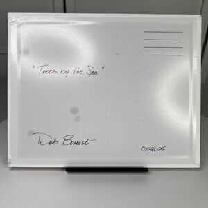 This original artwork by Deb Bossert captures a serene coastal landscape with lush trees and vibrant wildflowers. The use of acrylic paints creates a dynamic texture and depth, emphasizing the beauty of nature. Its compact size is perfect for display in any room, offering a tranquil view of the sea.