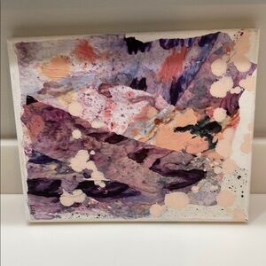 Enhance your space with this stunning 8x10 abstract signed canvas art. Featuring a blend of purple and pink hues, this piece adds a touch of elegance to any room.