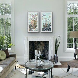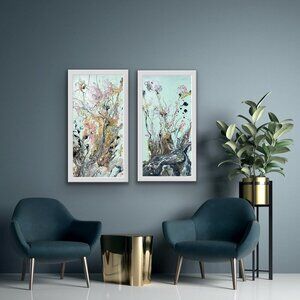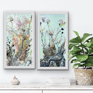 Original Acrylic Abstract Botanical Painting 2 Panel