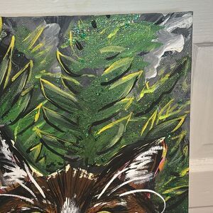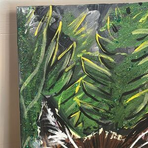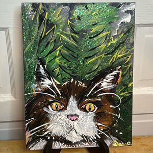 Original Acrylic Painting 9x12 Black and White Cat Painting in House Plant Wild