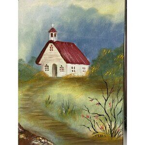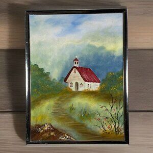 Original Acrylic on Canvas Country Pathway To Church By Vella 1993 Framed