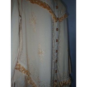 Original Anthony Peasant Top Women 1X Boho Fringe Embroidered Gold Tunic b30