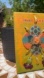 Painted with acrylics on 5" x 7" (approx) canvas. Various materials include brass, resin, and gold from old jewelry as well as pressed carnations.