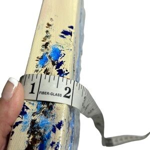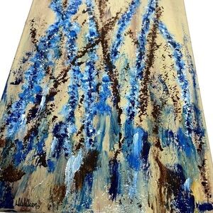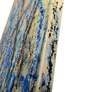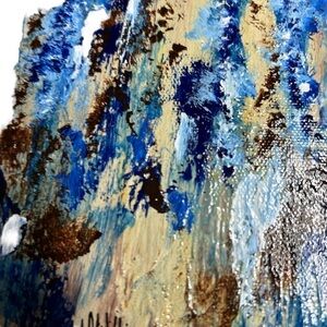 Painted with Professional Grade Acrylics on High Quality Canvas/ Contrasting Colors of Blues and Browns against Tan Background