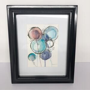 Original Artwork Framed Loose Watercolor Floral Bubbles Art Painting by H. Barrow