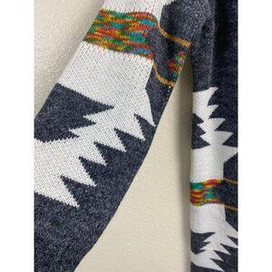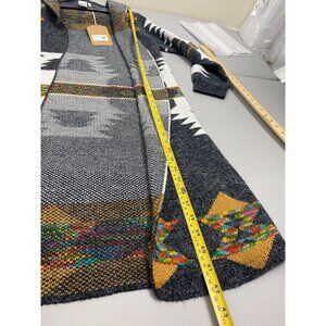 Original Aztec Open Front Hooded Long Cardigan Sweater size Medium Tribal.
