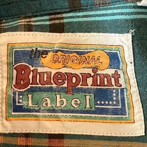 Original Blueprint Label Button Down Shirt Blue Yellow Green Plaid Mens Sz Large