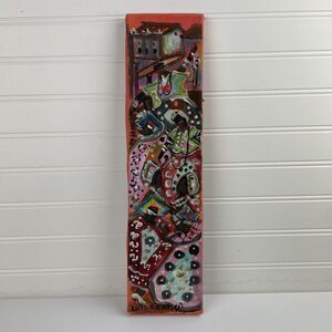 Original Brazilian Folk Art Painting by Luiz Franca 2014 16"x4" Canvas Colorful