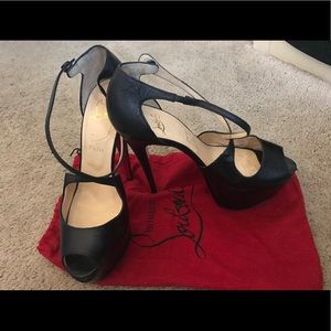 Original black leather heels. Christian louboutin only wore twice. Original dust bag. I am originally 8.5 in all my shoes but louboutin sizes run small so these are a 9.5 but fit for 8.5 foot..