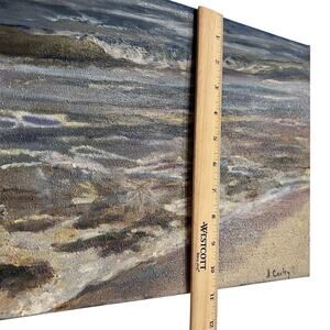 Tags: original painting, seascape, coastal art, beach decor, ocean waves, signed art, A Cooley, oil on canvas, coastal wall art, textured painting, handmade, nautical theme, ocean shore, surf art