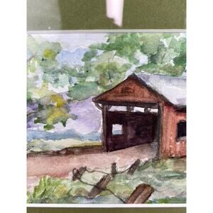 Original Covered Bridge Watercolor Oak Framed Matted Signed