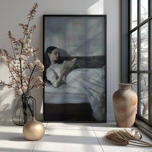 Original Dark Literary Art Print + Digital Copy, Dreamy Woman Reading