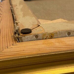 The canvas I stretched over a wooden frame and has handwritten in pencil, “end of _____ (Holland) A. Hendriks”