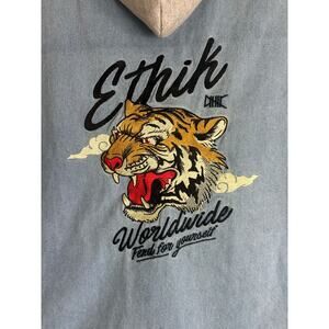 Add a touch of unique style to your wardrobe with this original Ethik embroidered denim vest! This vest is in great condition and features beautiful embroidery that makes it stand out.