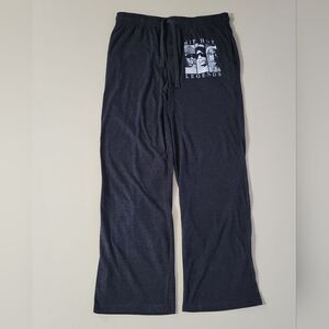 These pants are made from a comfortable cotton and polyester blend to help you stay comfy and cozy as you sleep through the night or lounge at home. Use the drawstring on the front to tighten or loosen the elastic waistband for a better fit. Graphics of Hip Hop Legends Notorious BIG, Easy E, and Tupac Shakur are on the left front. Give yourself the gift of a good night’s sleep with the snug and comfy feel of these sleep pants. They also have pockets! These awesome loungers are in excellent condition.