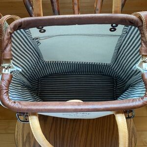 New with no tags original Flea bag, it is a beautiful bag, super sturdy, no stains or usage, 16”x 16”x6”. Genuine leather & canvas construction.