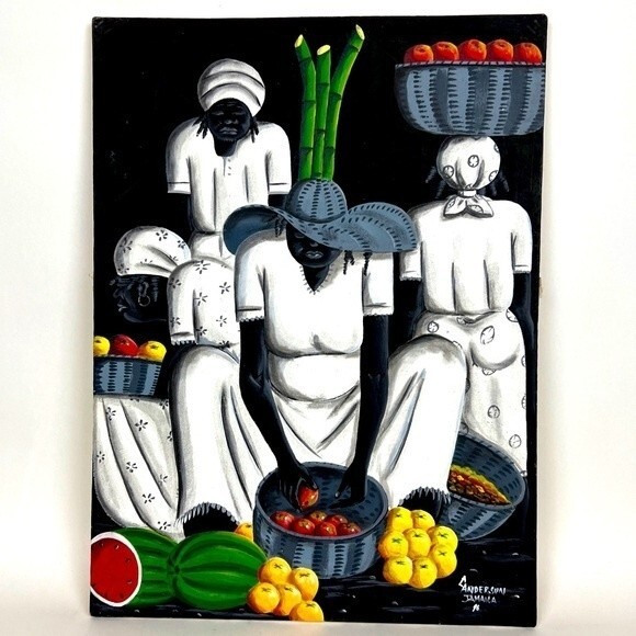 Original Folk Art Painting by Artist C. Anderson Jamaica Market Scene VTG 1996. Condition is pre-owned. Packaged carefully. Thank you!