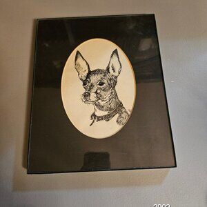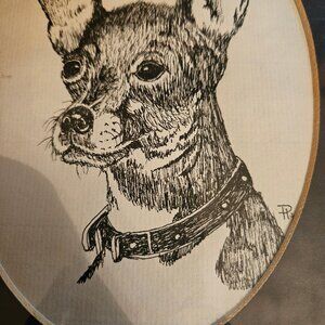 This fabulous original ink sketched dog picture is handmade and signed by the artist. It is black and white and measures 8x10. Add this to your gallery wall.