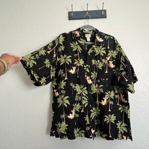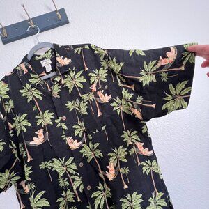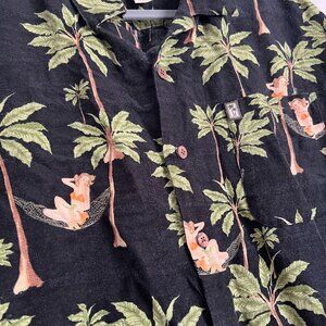 Hula Hawaiian button up shirt by Original Island Sport. Men's XL. Linen blend. In excellent condition. Great tropical vacation shirt. Did include close up of shirt to see fabric. Nice coconut shell-like buttons and single pocket front. Nice and breathable. Please see all pictures and measurements for reference.
