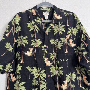 Original Island Sport Linen Blend Hula Hawaiian Button Shirt Sleeve Men XL EUC!
