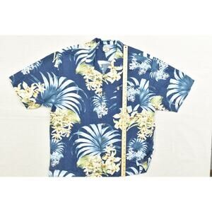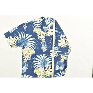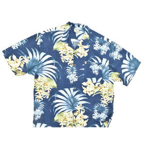 Original Island Sport Mens Blue Floral Button Down Hawaiian Shirt Size 2XL Linen
