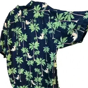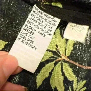 Excellent preowned condition. No known flaws. Linen/rayon blend. Black with box texture pattern (see close ups) with palm tree & pinup print.