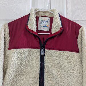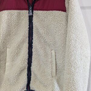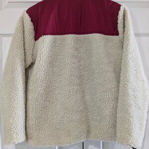 Original J. Crew Boys' XL Beige Faux Fur Sherpa Jacket with Red Accents