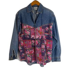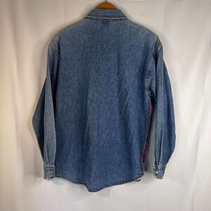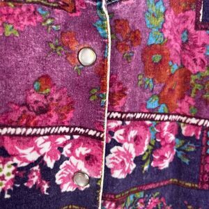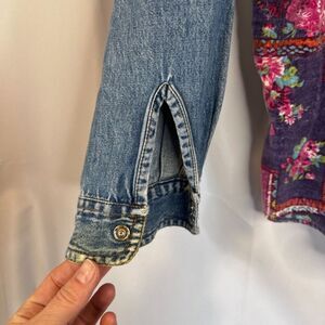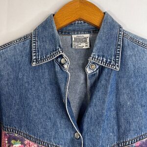 Original Jordache Vintage 100% Cotton Denim Shirt Velvet Floral Front Sz Medium